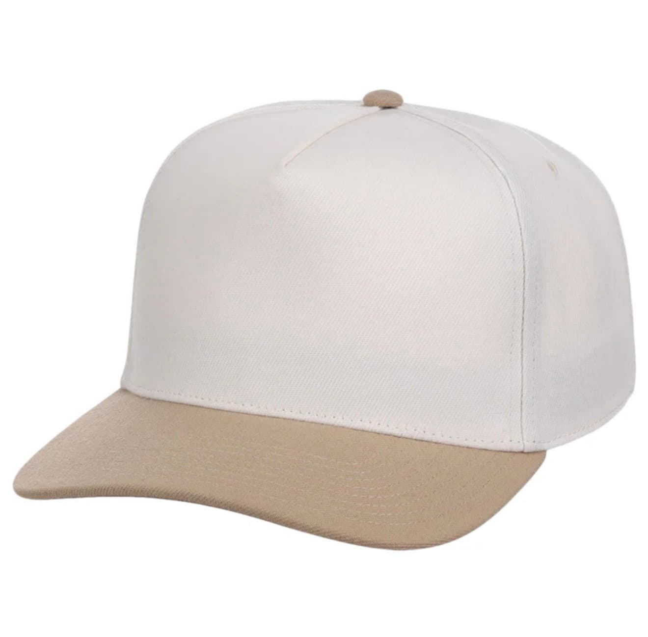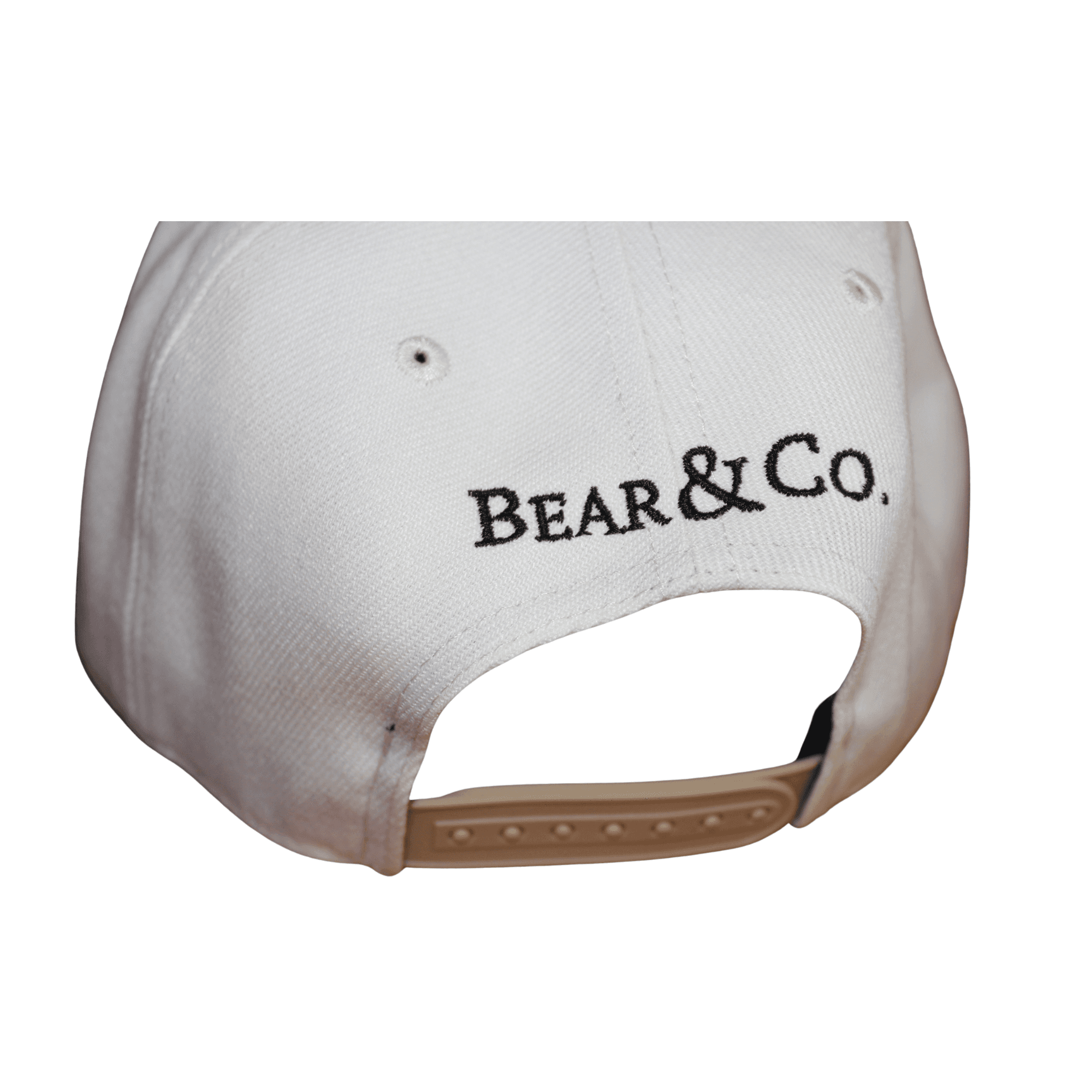 Ivory (a little more cream than white) and tan snapback with black embroidery on front and back. 3rd image is from the manufacturer for reference.