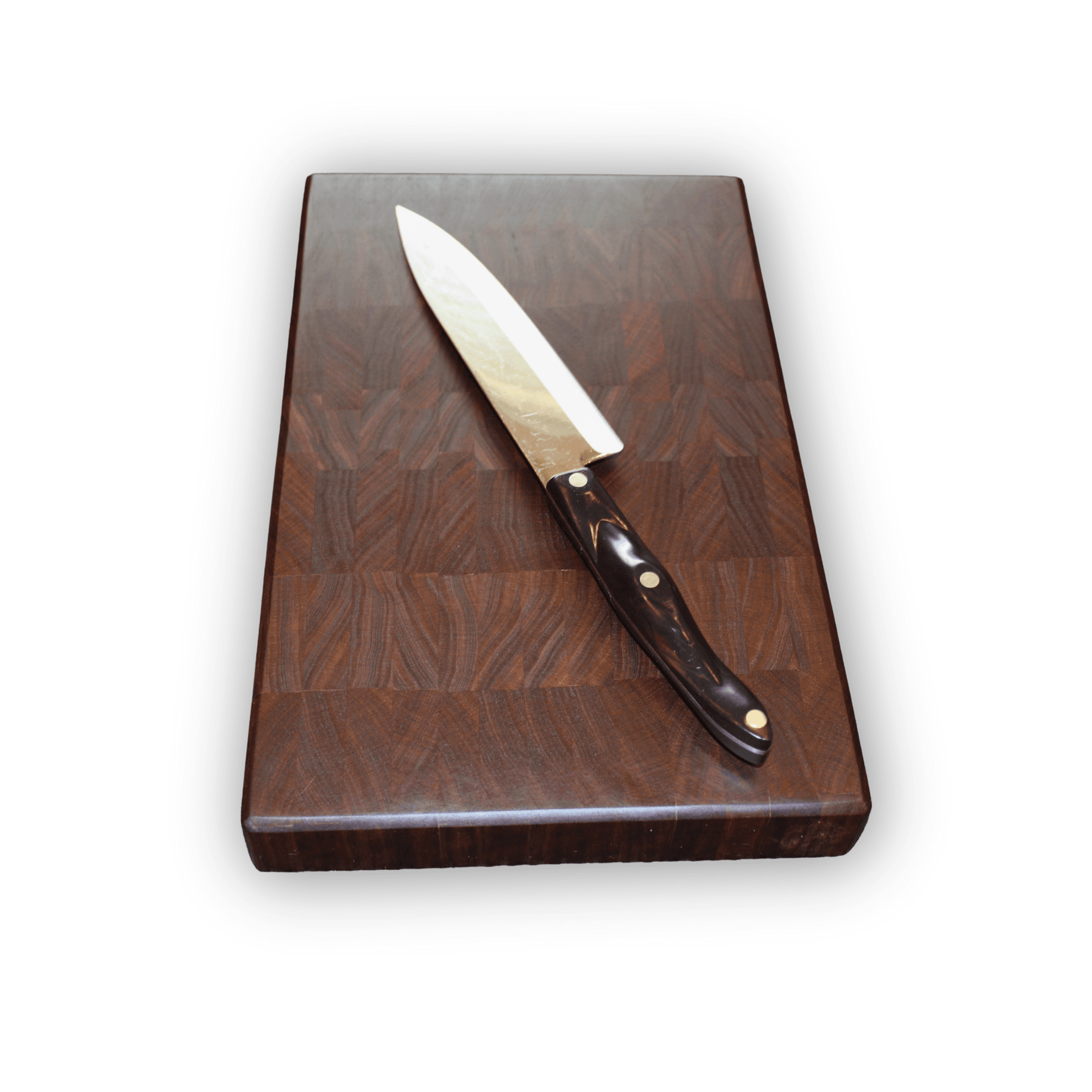 Solid end grain walnut Dimensions: 14" x 8.75" x 1.5" Extra-thick, durable, and knife-friendly Smooth, eased edges for comfort Finished with food-safe oil & wax Handmade, one of a kind This is the kind of board that gets better with time and built to be used every day.