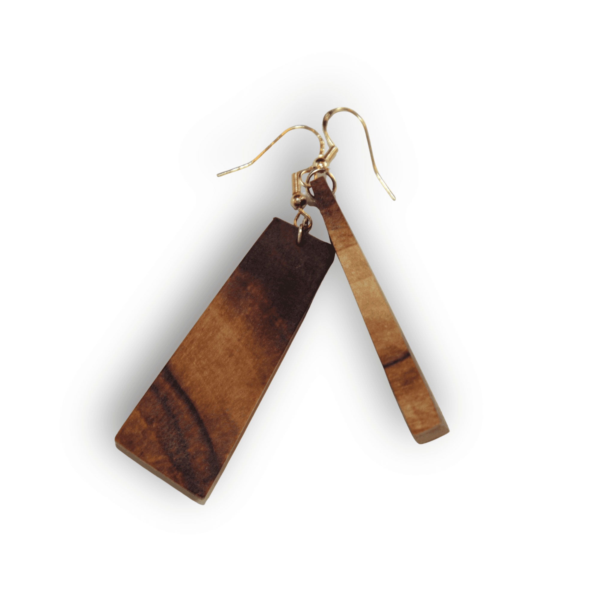 Walnut dangles with 14K gold plated metal, sealed with oil and wax that will need to be reapplied as necessary.